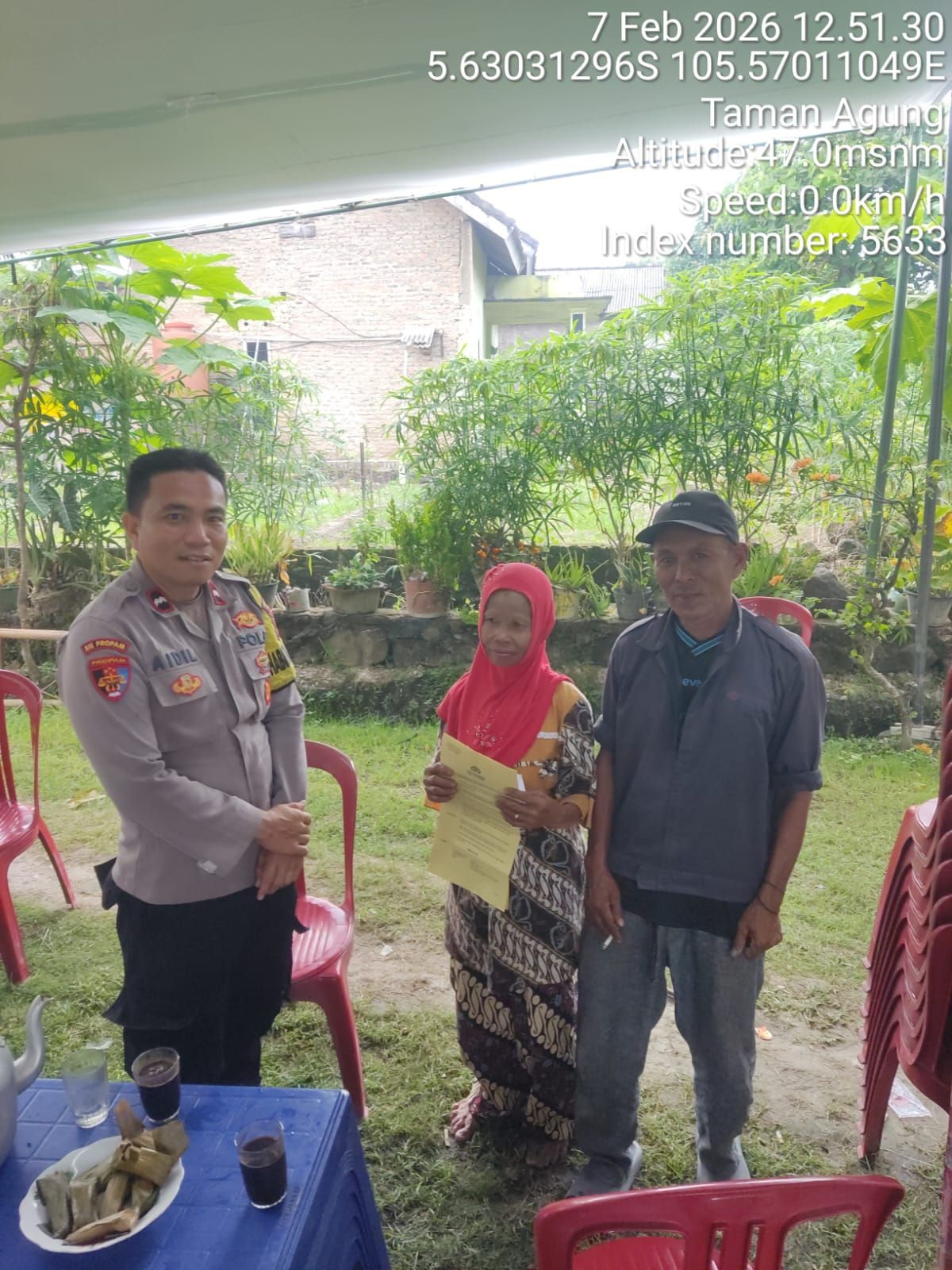 LAMPUNG SELATAN — Upaya menjaga stabilitas keamanan dan ketertiban masyarakat terus dilakukan jajaran kepolisian melalui pendekatan preventif di wilayah desa binaan. Bhabinkamtibmas Polsek Kalianda, Aipda Aidil Fitriansyah, melaksanakan kegiatan sambang sekaligus penyampaian surat izin keramaian kepada warga yang akan menggelar resepsi hajatan di Dusun Kebun Agung, Desa Taman Agung, Kecamatan Kalianda, Kabupaten Lampung Selatan, Sabtu (7/2/2026) sekitar pukul 13.00 WIB.