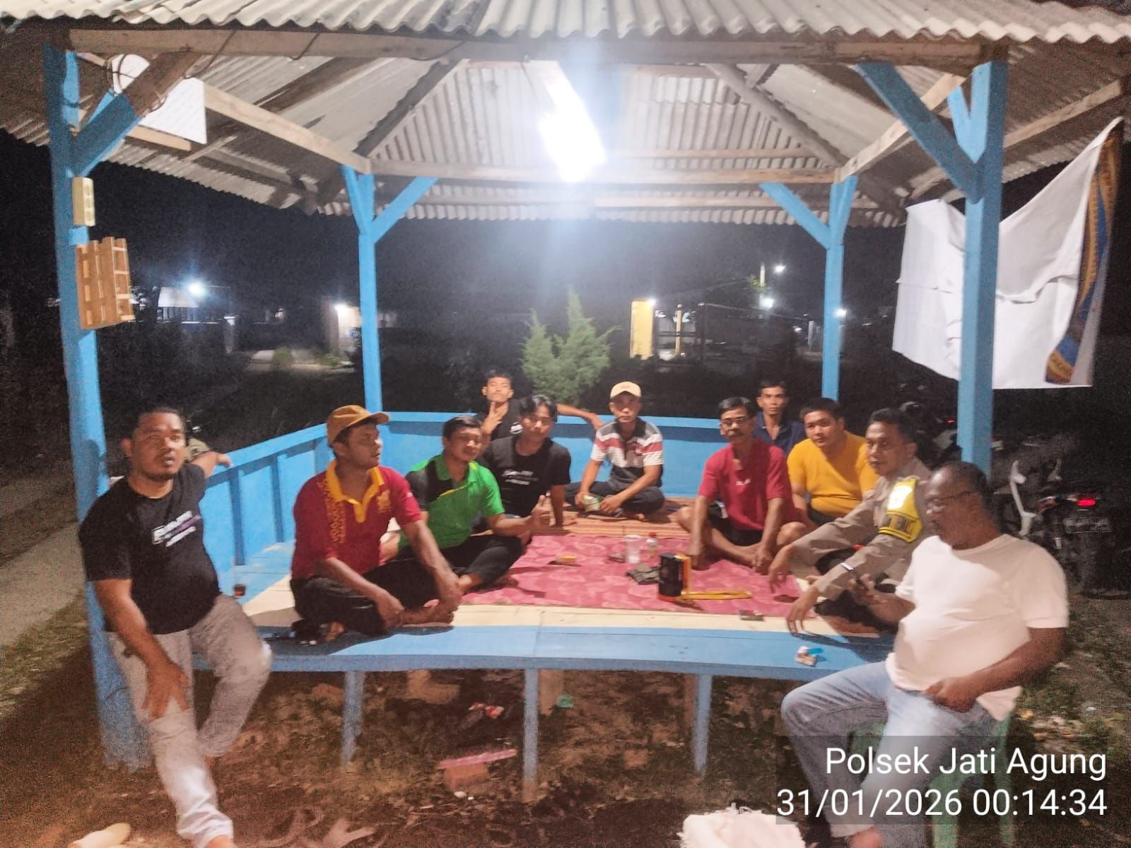 LAMPUNG SELATAN, – Personel Bhabinkamtibmas Polsek Jati Agung, Polres Lampung Selatan, melaksanakan kegiatan sambang dan pembinaan kepada warga yang melaksanakan ronda malam di Desa Jatimulyo, Kecamatan Jati Agung, Kabupaten Lampung Selatan, Jumat (30/1/2026) malam.