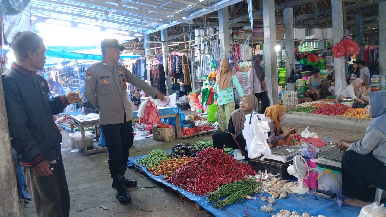 Kegiatan patroli tersebut dilaksanakan sekitar pukul 09.00 WIB hingga selesai dengan menyasar area pasar tradisional yang menjadi pusat aktivitas masyarakat dan perekonomian warga.