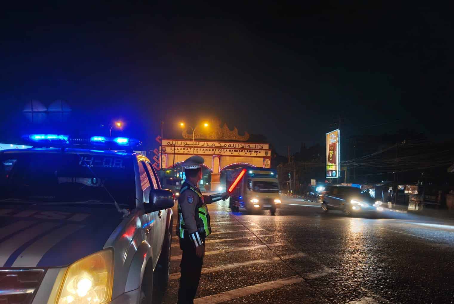 Patroli Malam Satlantas Polres Lampung Selatan Antisipasi Macet, Laka, dan C3 di Jalinsum Natar