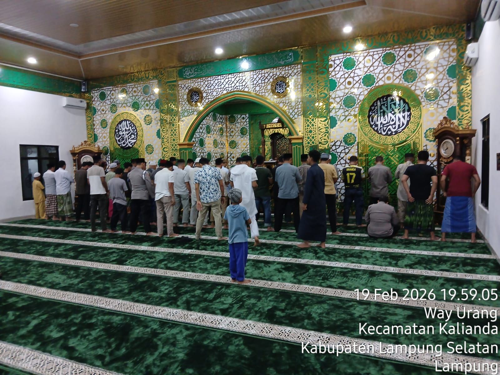 LAMPUNG SELATAN — Personel Polres Lampung Selatan melaksanakan kegiatan Sholat Isya dan Tarawih berjamaah di Masjid Jami’ Solah Polres Lampung Selatan pada Kamis (19/2/2026) pukul 19.30 WIB hingga selesai.
