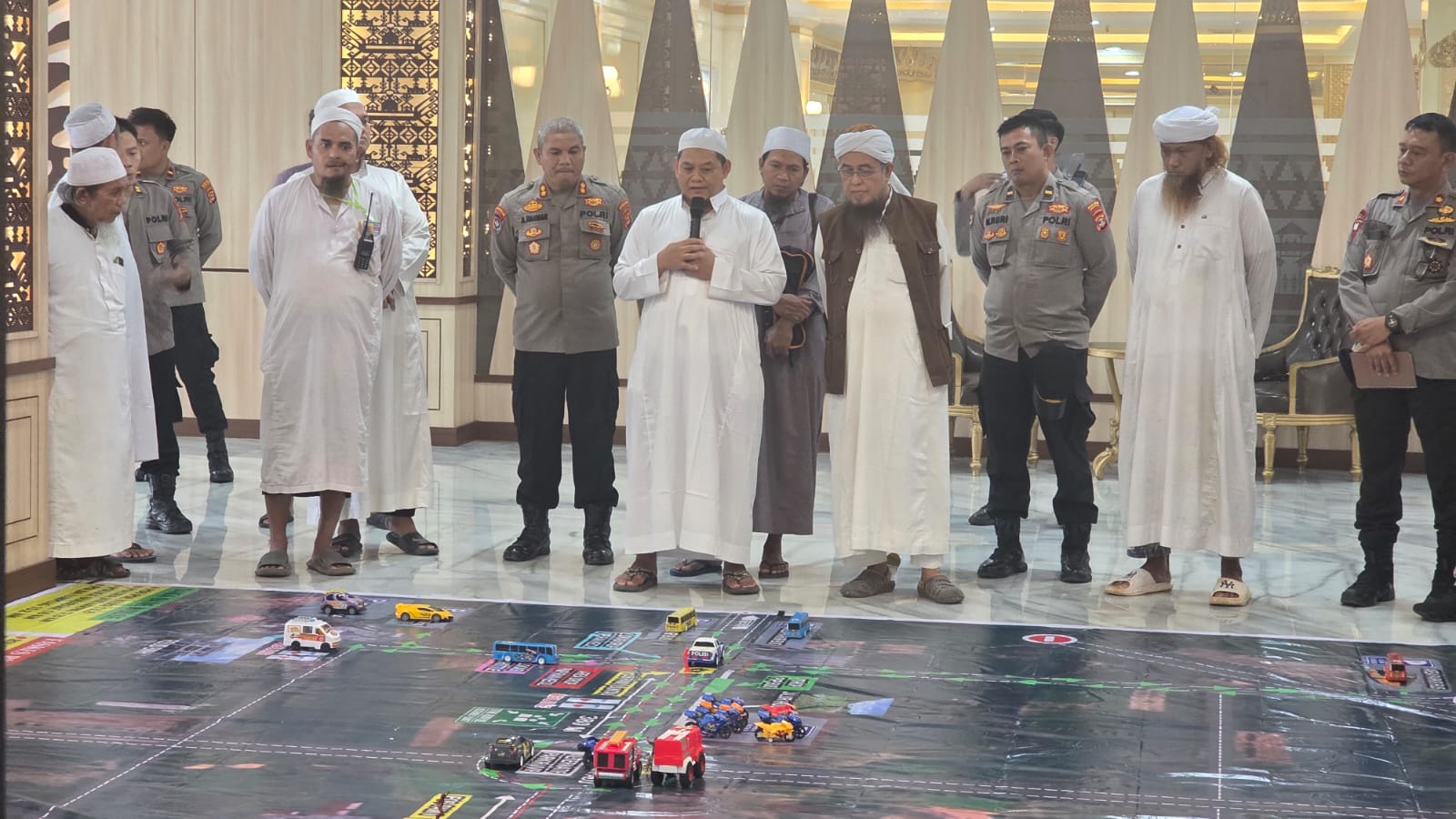 “Jika ada permasalahan sekecil apa pun, segera koordinasikan dengan kami. Tujuannya agar kondisi dapat dinetralisir lebih cepat, mencegah situasi kecil berkembang menjadi besar,” tegasnya. Pelaksanaan TFG ini menjadi memastikan seluruh pihak memahami alur pengamanan, pergerakan massa jamaah, mekanisme pengaturan kendaraan, pelayanan kesehatan, hingga langkah-langkah kontijensi.